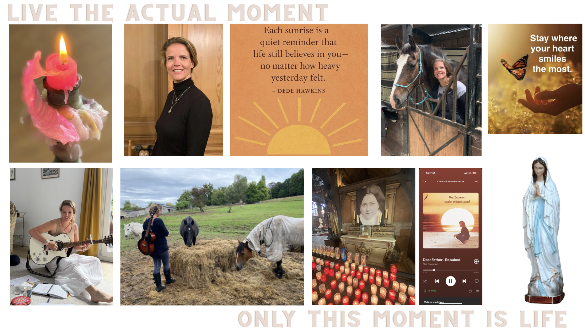 De moi: avec la guitare, le chant, le cheval, la foi, les liens qui me sont chers