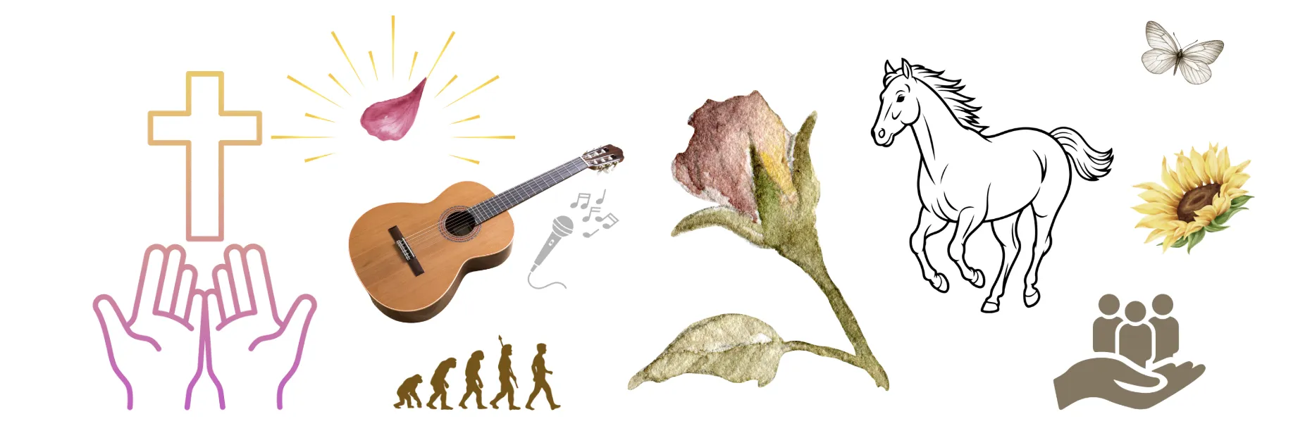 Gitaar spelen en zingen, mijn geloof en paarden maken integraal deel uit van mijn identiteit en daar put ik mijn energie uit.